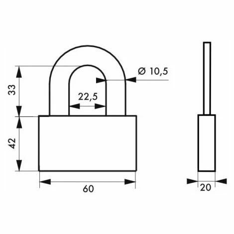 CADENAS QUADRA 60 mm – nickelé satiné – 4 CLÉS REVERSIBLES PAR THIRARD