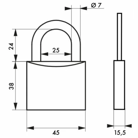 Cadenas Type 1, 45mm, anse acier, 2 clés.