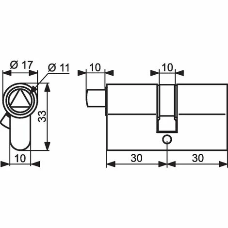 Caractéristiques : Type : Clé / triangle T11 – Finition : Nickelé – Nombre de pièce : 1 – Longueur cylindre (mm) : 30 x 30