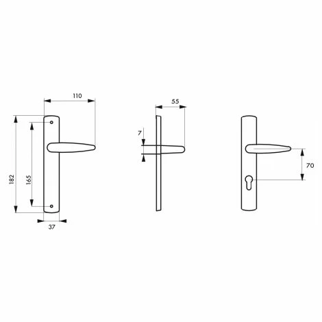 Plaques acier embouti. Béquilles alliage fondu. carré acier 7 mm. Vis métaux sécables. Entr’axe de fixation 165 mm.
