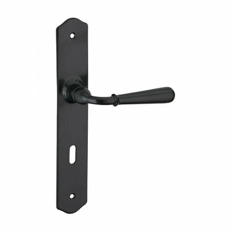 POIGNĂE DE PORTE INTĂRIEURE CHARON – ENTRAXES 195 mm EN ACIER PATINE TROU DE CLE PAR THIRARD