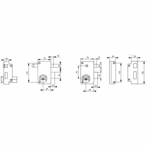 Détails : Coffre et gache en acier embouti, pène et demi tour laiton