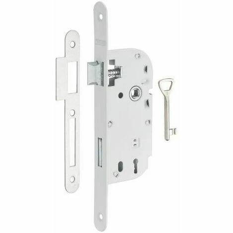 Serrure encastrée, axe 40mm, pene dormant BR, blanc, 1 clé.