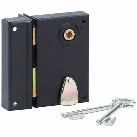 Coffre et gâche acier cambré, pêne acier et demi-tour acier, canon acier L. 35 mm , mécanisme à 1 tour, carré 7 mm.