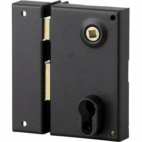 Coffre et gâche acier cambré, pêne acier, demi-tour acier, mécanisme à 2 tours carré 7 mm finition époxy noir granité