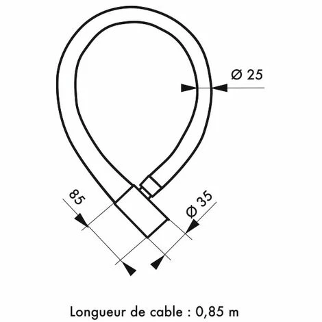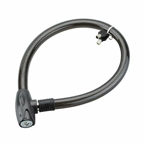 Câble acier, gainé PVC. Mécanisme à disques avec cache de protection. 2 clés plates en acier nickelé.