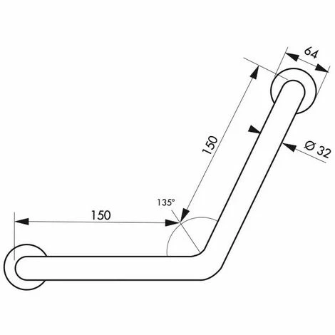 Barre de maintien en inox 304. Angle 135°. Diamètre32mm. Fourni avec vis de fixation.