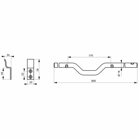 · Barre de 46 cm en finition zinguée de couleur noire ;