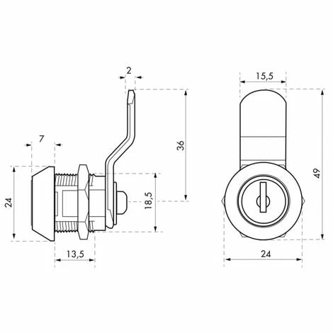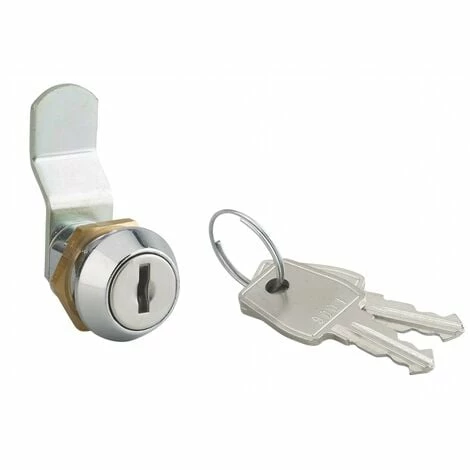 Corps alliage moulé. Mécanisme à paillettes. Came coudée vers l’arrière montée à 12h. 2 clés nickelées. Ecrou et griffe de fixation.