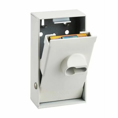 Coffre cambré en acier zingué. Couvercle abattant. 2 accroches clés. 1/2 cylindre profilé européen. 30 x 10 mm, non livré.