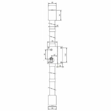 Tringles standard permettant une condamnation de porte de 1,65 m à 2,25 m.