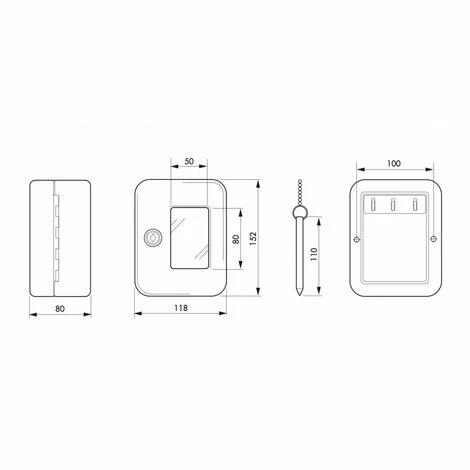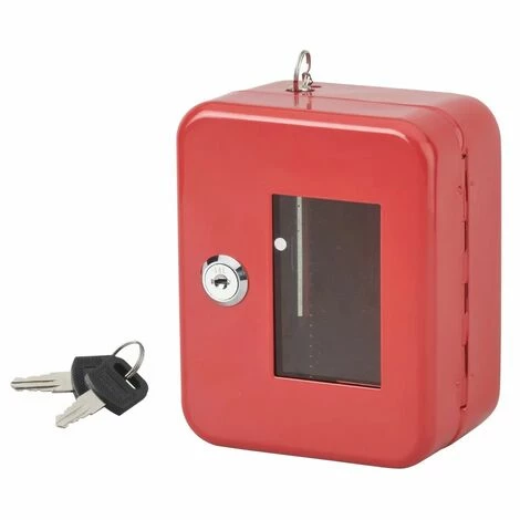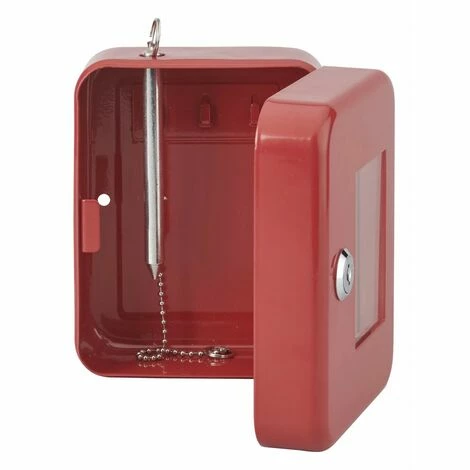 Coffre acier. Vitre interchangeable. Chainette avecmarteau brise glace. 3 crochets. 2 clés. Fixation murale(accessoires fournis).