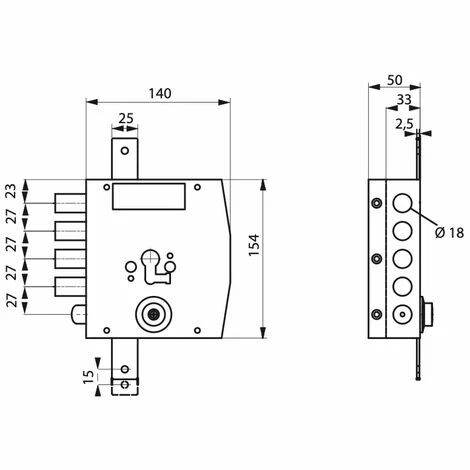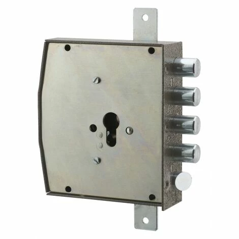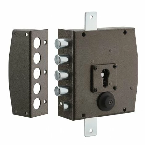 Coffre et gâche acier. Fermeture à 2 tours. Rappel du 1/2 tour par la clé. Pênes diam. 18mm. Pour cylindre profilé.Ce boitier de serrure à appliquer à cylindre en acier est conçu pour verrouiller efficacement votre porte d’entrée. Il peut être ajouté à une porte déjà équipée pour renforcer davantage la sécurité. Ce boitier Thirard est destiné à être complété avec un cylindre profilé, vous permettant de choisir le niveau de sécurité de votre choix. Une gâche équerre de haute résistance est fournie, ainsi que la poignée double pour la version à fouillot. Dotée d’un verrouillage à trois points, cette serrure s’installe facilement et offre un verrouillage efficace de votre porte pour garantir votre sécurité et celle de vos biens. Le boitier de serrure en applique verticale Beluga est disponible en différentes versions : avec finition marron ou blanche, avec verrouillage à fouillot ou à tirage, pour une pose à droite ou à gauche.- Dimension : 154x140mm