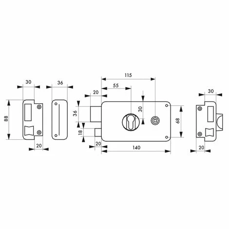 Coffre et gâche acier embouti. Pêne et demi-tour acier zingué. Mécanisme à 2 tours. Rappel du demi-tour par la clé. Carré 6 mm. Entrée de cylindre et de fouillot laiton. Pour cylindre profilé européen. 30 x 60 mm, pour porte de 45 mm.Ce boitier de serrure à appliquer à cylindre en acier est conçu pour verrouiller efficacement votre porte d’entrée. Il peut être ajouté à une porte déjà équipée pour renforcer davantage la sécurité. Cette serrure est destinée à être complétée par un cylindre profilé. Dotée d’un mécanisme à 2 tours, cette serrure s’installe facilement et offre un verrouillage efficace de votre porte pour garantir votre sécurité et celle de vos biens. Ce boitier de serrure en applique horizontale Thirard a une finition noir granité et est disponible en différentes versions : avec verrouillage à fouillot, à tirage ou à cylindre, pour une pose à droite ou à gauche.- Dimension : 140x88mm