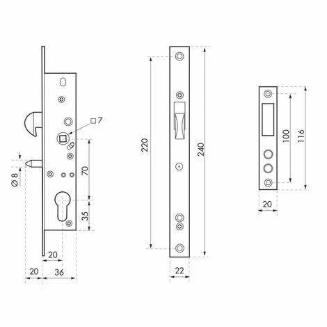 Coffre acier. Têtière inox. Pêne crochet acier. Gâche plate inox. Carré de 7 mm.Ce boitier de serrure à encaster en acier est conçu pour équiper votre porte d’entrée en métal. Cette serrure est destinée à être complétée avec la gâche et le cylindre de votre choix, vous permettant de choisir votre niveau de sécurité. Cette serrure est dotée d’un demi-tour réversible sans démontage et sans outils. Elle s’installe facilement et offre un verrouillage efficace de votre porte pour garantir votre sécurité et celle de vos biens. Ce boitier de serrure à encastrer dispose d’une têtière à bouts carrés en inox et est disponible avec un axe à 21mm, 24mm ou 30mm. Ce boitier Thirard est livré avec son rouleau interchangeable.- Dimension : 36xmm