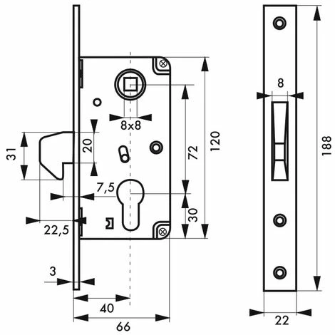 Coffre acier zingué épaisseur 20 mm. Têtière acier zingué. Pêne crochet. Gâche plate acier zingué. Carré de 8 mm entr’axe 72 mm. Sans rappel du 1/2 tour par la clé.Cette serrure à encaster en acier de la marque Thirard est conçue pour verrouiller efficacement votre portail. Une gâche plate en acier est fournie avec la serrure. Dôtée d’un pêne crochet, cette serrure s’installe facilement à droite comme à gauche et offre un verrouillage efficace de votre porte pour garantir votre sécurité et celle de vos biens. Le coffre pour serrure à crochet est disponible seul, et la poignée pour serrure à crochet peut être ajoutée.- Dimension : 56x120mm