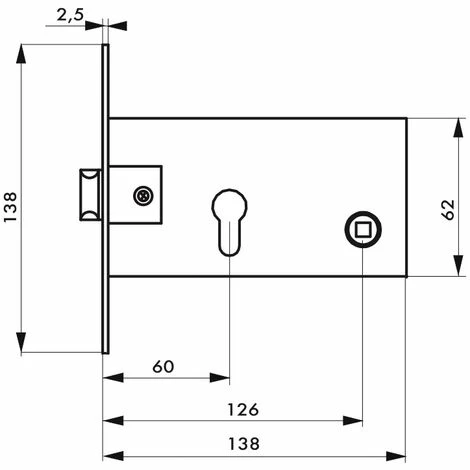 Coffre acier embouti épaisseur 12 mm. Têtière acier bouts Carrés. Demi-tour réversible sans démontage du coffre. Pêne alliage zingué. Gâche plate acier. Carré 8 mm, entr’axe 66 mm.Ce boitier de serrure à encaster en acier est conçu pour verrouiller efficacement votre porte d’entrée. Cette serrure est destinée à être complétée avec le cylindre de votre choix, vous permettant de choisir votre niveau de sécurité. Dotée d’un mécanisme à rappel du demi-tour par la clé, cette serrure offre un verrouillage efficace de votre porte pour garantir votre sécurité et celle de vos biens. Ce boitier de serrure à encastrer de la marque Thirard dispose d’un axe à 60mm et d’une têtière à bouts carrés.- Dimension : 138x62mm