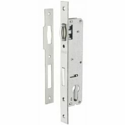 Coffre acier. Têtière inox. Rappel du 1/2 tour par la clé. Pêne alliage nickelé. Gâche inox. Carré 8 mm, entr’axe 85 mm.