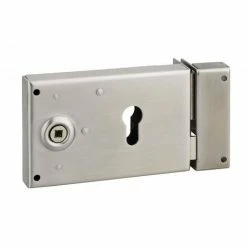 Coffre et gâche inox 304 L cambré. Pêne et demi-tour laiton chromé. Mécanisme à 2 tours. Pêne 1/2 tour réversible pour porte ouvrant à l’extérieur. Carré 6 mm. Entrée de cylindre et de fouillot laiton chromé.- Dimension : 140x88mm