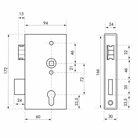 Serrure acier zingué, coffre acier brut à souder, demi tour en saillie de 3mm, mécanisme à 2 tours, axe 60mm, carré 8mm, pour cylindre PE.Conçu pour équiper entièrement votre portail en bois, PVC ou aluminium, le kit Modulox est composé du boitier de serrure et de la béquille. Il est à compléter avec le cylindre profilé de votre choix, vous permettant de sélectionner le niveau de sécurité. Ce boitier de serrure Thirard s’installe facilement et offre un verrouillage efficace de votre portail. Ce kit de serrure en applique verticale est réversible, vous permettant une pose à droite comme à gauche.- Dimension : 94x172mm