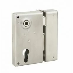 Coffre et gâche inox 304 L cambré. Pêne et demi-tour laiton chromé. Mécanisme à 2 tours pêne 1/2 tour réversible pour porte ouvrant à l’extérieur. Carré 7mm. Entrée de cylindre et de fouillot laiton chromé.- Dimension : 73x125mm
