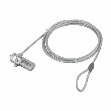 Cable ANTIVOL pour ordinateur portable, cable acier D4mm, longueur 1,80ml, mecanisme Ă 4 virolles Ă combinaison modifiable.