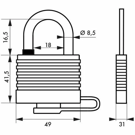 Corps à lamelles acier zingué gainé PVC. Anse acier cémenté gainée PVC. Double verrouillage par billes inox. Mécanisme à goupilles. 2 clés laiton nickelé gainé PVC.