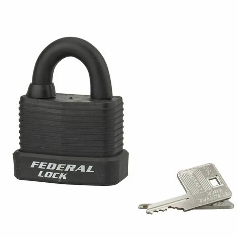 Corps à lamelles acier zingué gainé PVC. Anse acier cémenté gainée PVC. Double verrouillage par billes inox. Mécanisme à goupilles. 2 clés laiton nickelé gainé PVC.