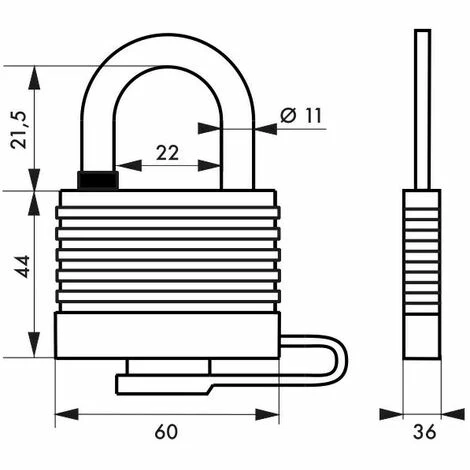 Corps à lamelles acier zingué gainé PVC. Anse acier cémenté gainée PVC. Double verrouillage par billes inox. Mécanisme à goupilles. 2 clés laiton nickelé gainé PVC.