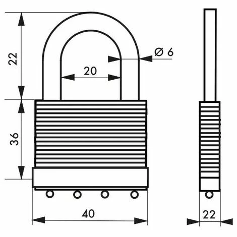 Corps à lamelles laiton. Anse laiton. Mécanisme à goupilles. Double verrouillage par billes. 2 clés laiton nickelé.