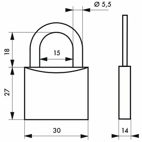 Corps acier. Anse acier cémenté nickelé. Mécanisme à goupilles. Simple ancrage. 3 clés acier nickelé.- Dimension : 30 mm