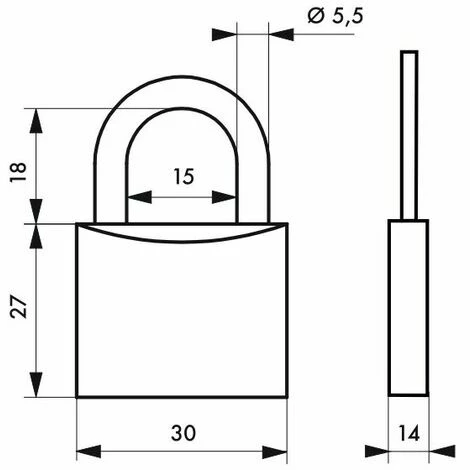 Corps acier. Anse acier cémenté nickelé. Mécanisme à goupilles. Simple ancrage. 3 clés acier nickelé.- Dimension : 30 mm