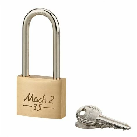 Fabriqué en laiton, le cadenas de sureté Mach 2 est spécialement conçu pour une utilisation en intérieur. Son anse en acier cémenté et son mécanisme à goupilles offrent une sécurité efficace des casiers, malles de stockage et caisses à outils.Garanti 10 ans, ce cadenas est fourni avec ses deux clés en acier nickelé. Il est disponible en plusieurs dimensions allant de 35 à 55mm, avec une anse haute, demi-haute ou de taille standard. Sur demande, le cadenas Mach 2 peut être fabriqué sur numéro imposé ou même combinaison et des clés supplémentaires sur numéro peuvent être fournies.