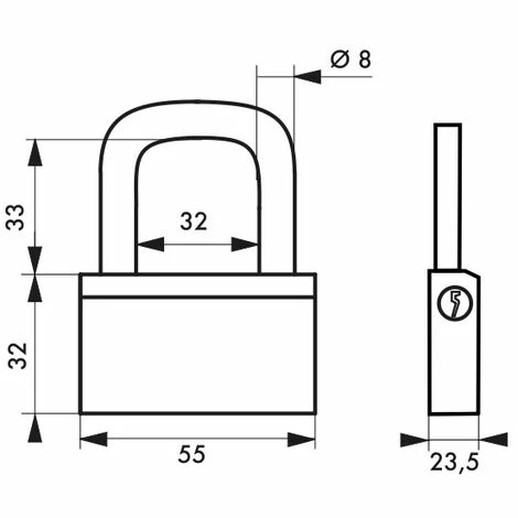 Thirard propose également un modèle de cadenas à anse haute : de 145 à 300 mm. Selon les modèles, le corps du cadenas mesure 55 ou 80 mm de largeur.