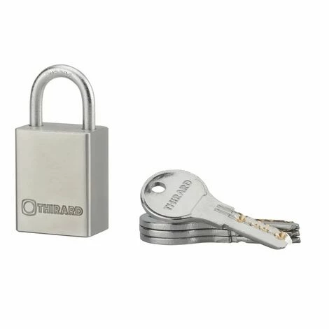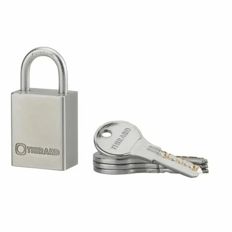 Corps inox. Anse inox. Mécanisme à goupilles. Double verrouillage par billes. Trou d’écoulement d’eau. 4 clés réversibles.