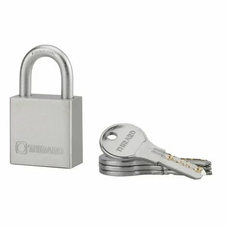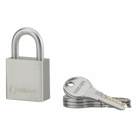 Corps inox. Anse inox. Mécanisme à goupilles. Double verrouillage par billes. Trou d’écoulement d’eau. 4 clés réversibles.