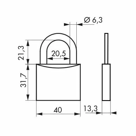 Corps laiton monobloc. Anse acier cémenté nickelé. Mécanisme à goupilles. Double ancrage. 2 clés laiton nickelé.