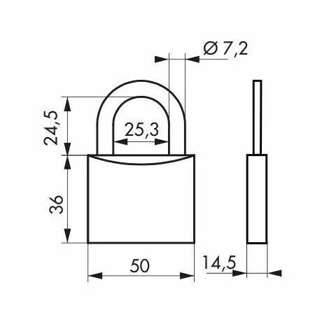 Corps laiton monobloc. Anse acier cémenté nickelé. Mécanisme à goupilles. Double ancrage. 2 clés laiton nickelé.