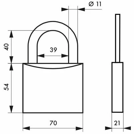 Corps laiton monobloc. Anse laiton. Mécanisme à goupilles. Double ancrage. 2 clés acier nickelé- Dimension : 70 mm