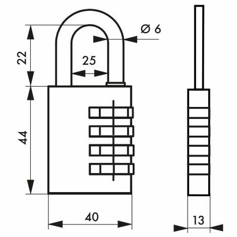 Corps aluminium. Anse acier nickelé. Mécanisme à viroles. Combinaison modifiable.- Dimension : 40 mm