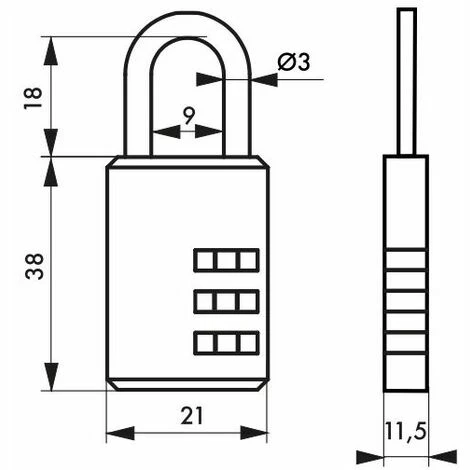 Corps alliage moulé. Anse acier nickelé. Mécanisme à 3 viroles. Combinaison modifiable, 1 000 combinaisons possibles.- Dimension : 21 mm