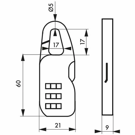 Corps alliage moulé. Anse alliage moulé. Mécanisme à 3 viroles. Combinaison modifiable, 1 000 combinaisons possibles.- Dimension : 21 mm