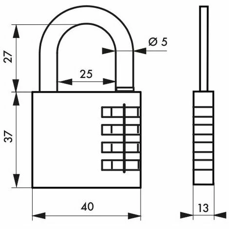Corps alliage. Anse acier nickelé. Mécanisme à viroles. Combinaison modifiable.- Dimension : 40 mm