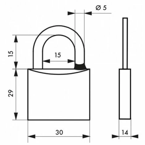 Cadenas Corps laiton monobloc. Anse acier inoxydable. Mécanisme à goupilles. Double ancrage par pênes. Joint d’étanchéité. Trou d’écoulement d’eau. 2 clés acier nickelé.