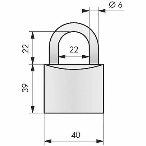 40 x 22 x Ø 6 mm. Cadenas anse classique. Livré avec 2 clés, 40 x 22 x Ø 6 mm.