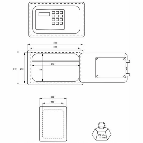 Conçu pour sécuriser les petits objets de valeurs, le coffret de sécurité Edimbourg se déverrouille à l’aide d’une combinaison. Il est doté d’une serrure électronique motorisée qui garde le code en mémoire même en cas de changement de piles. La combinaison, de 3 à 6 chiffres est modifiable à l’infini et à saisir sur le clavier à commande affleurante. L’alimentation se fait par 4 piles à l’intérieur du coffre mais une alimentation de secours à pile est aussi présente à l’extérieur.Garanti pendant 5 ans, le coffre-fort Edimbourg dispose d’une finition époxy noir et est fourni avec ses 2 clés de secours et ses piles.