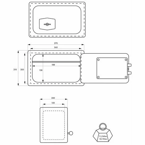 Le coffre de sécurité à poser Frontenac est équipé d’une serrure à double panneton asymétrique à 6 gorges, pour une protection optimale contre le crochetage. Ce petit coffre-fort est destiné à sécuriser les objets de petite taille. Sa porte est dotée de 2 pênes tournants en acier et d’une plaque de protection en acier au manganèse pour protéger la serrure. Son système de clé prisonnière évite les oublis et les vols tant que la porte est ouverte. Ce coffre de sécurité est doté d’une seule soudure pour empêcher les tentatives de forçage. De plus, la fixation au mur et/ou au sol est possible grâce aux trous déjà percés et aux accessoires fournis.Ce coffre-fort Frontenac en finition époxy noir est garanti 5 ans et fourni avec ses deux clés.
