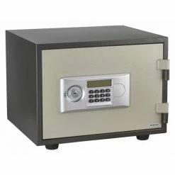 Coffre acier. Protection à la chaleur et au feu 01h00 Code utilisateur de 6 à 8 chiffres. Alimentation interne avec 4 piles 1,5V LR6 (piles fournies).Alarme intégrée. Verrouillage par 2 pênes acier chromé diam 20mm. 3 clés .Secours par clé d’urgence (3 clés fournie)