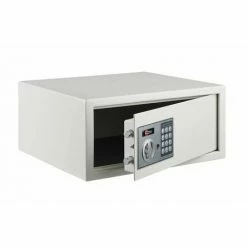 Le coffret de sécurité à poser Vincennes est équipé d’une serrure électronique à combinaison de 3 à 8 chiffres modifiable. Ce coffre-fort est destiné à sécuriser les objets de petite ou moyenne taille selon le modèle choisi. Sa porte est dotée de 2 pênes en acier. Ce coffre de sûreté est doté de quatre trous pour permettre la fixation au mur et/ou au sol est possible. Les accessoires de fixation sont fournis.Ce coffre-fort en finition époxy beige est garanti 2 ans et fourni avec ses deux clés de secours.