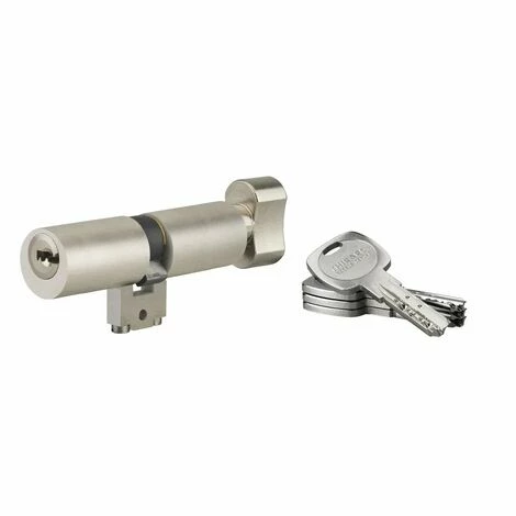 Mécanisme à 8 goupilles (7 en maillechort et 1ère en acier trempé). Protection contre le perçage par 1ère goupille + poussoir en acier trempé Protection contre la casse par poutre en acier. 4 clés plates réversibles en laiton nickelé avec carte de propriété.